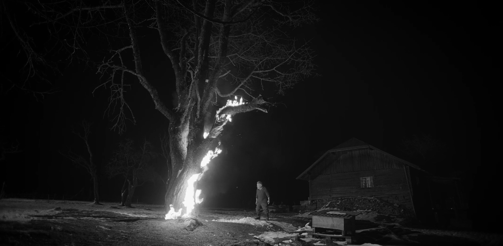 Józef preserves a family tradition — each year, he helps people hang themselves on his cherry tree. One day, a new suicide candidate arrives: a heartbroken Poet. Józef’s routine is disrupted, and the ritual is delayed by unexpected snowfall.